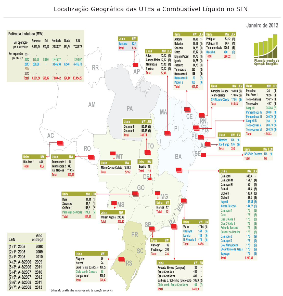 > Visão Geral do Sistema Interligado Nacional > Localização Geográfica das UTEs a Combustível Líquido