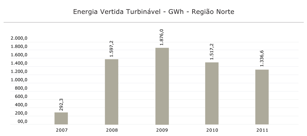 > Evolução dos Recursos Hidroenergéticos > Energia Vertida Turbinável - GWh > Região Norte