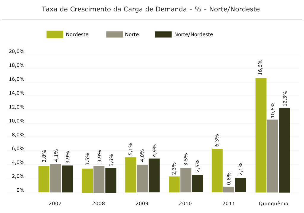 > Estrutura e Evolução dos Requisitos do SIN > Taxa de Crescimento da Carga de Demanda - % > Região Norte/Nordeste